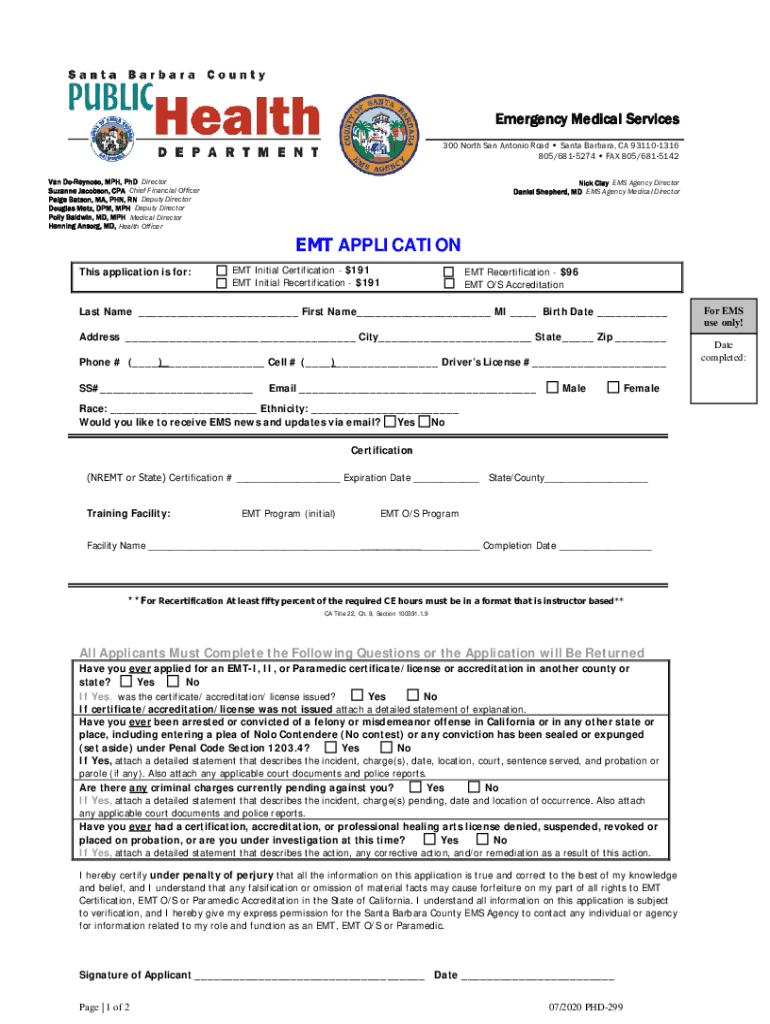 Emergency Medical Services 300 North San Antonio Road Santa Barbara, CA 931101316 805×6815274 FAX 805×6815142 Van Reynoso, MPH, PhD Director Suzanne Jacobson, CPA Chief Financial Officer Paige Batson,
