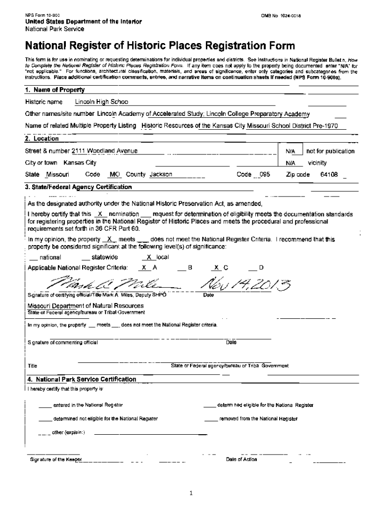 Get the free Lincoln High School.pdf - Missouri State Parks