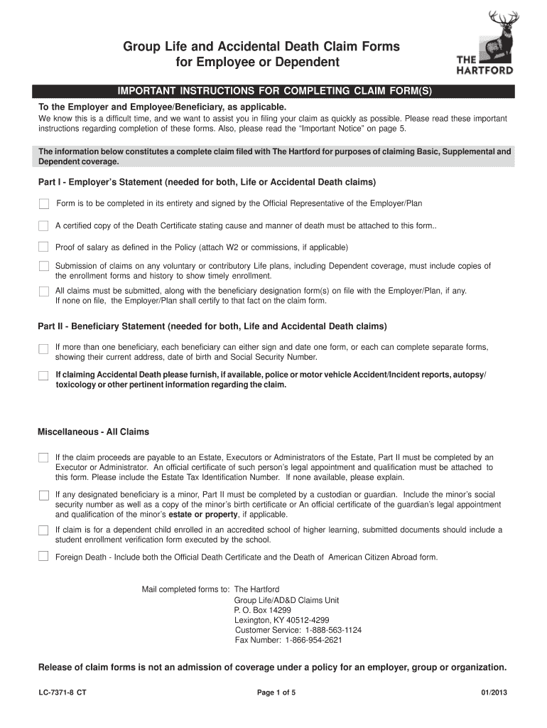 Employers and beneficiaries who meet the requirements outlined in The Hartford insurance policies can submit the Group Life and Accidental Death Claim Form to file claims.
