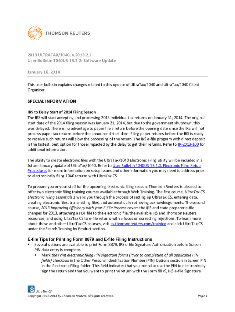 2013 ULTRAPAR×1040, v.2013.2.2 User Bulletin 1040US13.2.2: Software Update January 16, 2014, This user bulletin explains changes related to this update of Ultrapar×1040 and Ultrapar×1040 Client