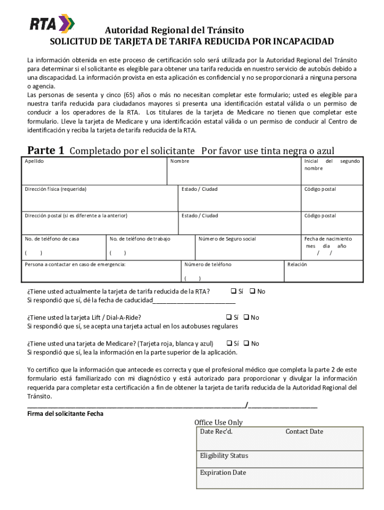 Authorized Regional Del Transit SOLICITED DE TARGET DE TARIFF REDUCED POR INCAPACITATED La information Brenda en ester process DE certification solo SER utilized POR la Authorized Regional Del Transit