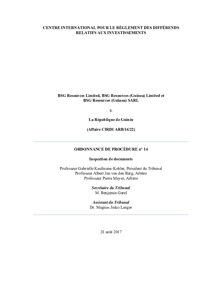 Get the free BSG Resources Limited, BSG Resources (Guinea) Limited ... - italaw - icsidfiles worl...