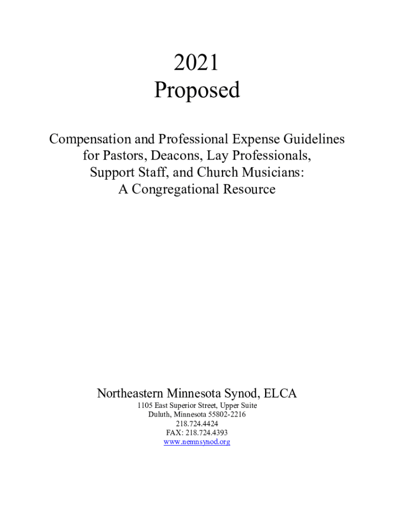 2021 Proposed Compensation and Professional Expense Guidelines for Pastors, Deacons, Lay Professionals, Support Staff, and Church Musicians: A Congregational ResourceNortheastern Minnesota Synod,