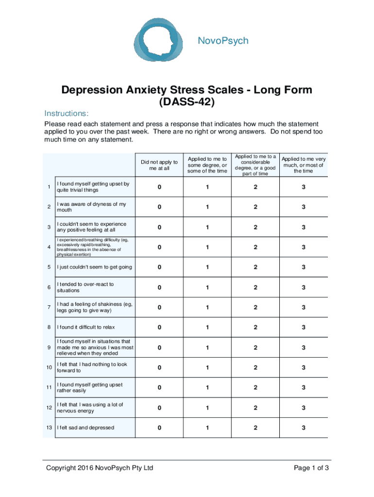 Get the free novopsych.com.au201803Depression Anxiety Stress Scales - Long Form (DASS-42)
