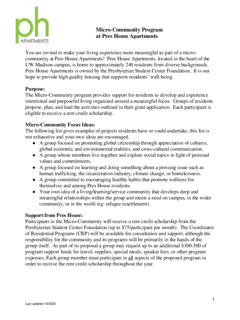 Get the free How to put together a micro-community - Pres House