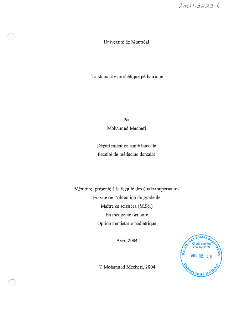 X×u.3fl3. University de MontralLa somatize prothtique pdiatriquePar Manned MecheriDpartement de sent buccal Faculty DE decline dentaireMmoire present la faculty DES tubes sunroofs En due DE contention