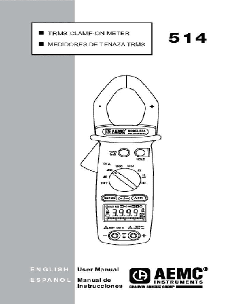 ARMS CRAMPON METERMEDIDORES DE TEN AZA TRMSENGLISHUser Manual S PA O L Manual de Instrucciones514Statement of Compliance Chauvin Arnold, Inc. d.b.a. AEC Instruments certifies that this instrument