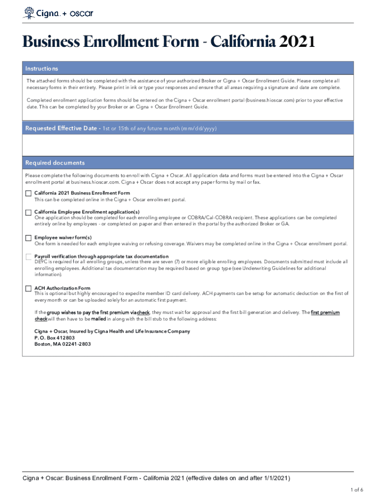 Business Enrollment Form California 2021 Instructions The attached forms should be completed with the assistance of your authorized Broker or Cagney + Oscar Enrollment Guide. Please complete all necessary