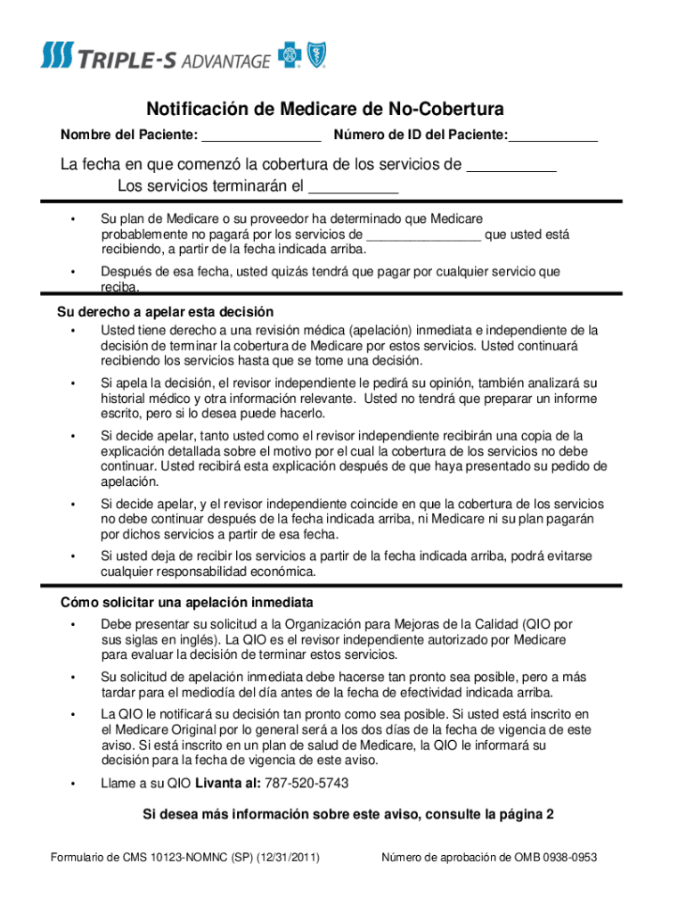 Get the free Notificacin de Medicare de No-Cobertura. Notificacin de Medicare de No-Cobertura