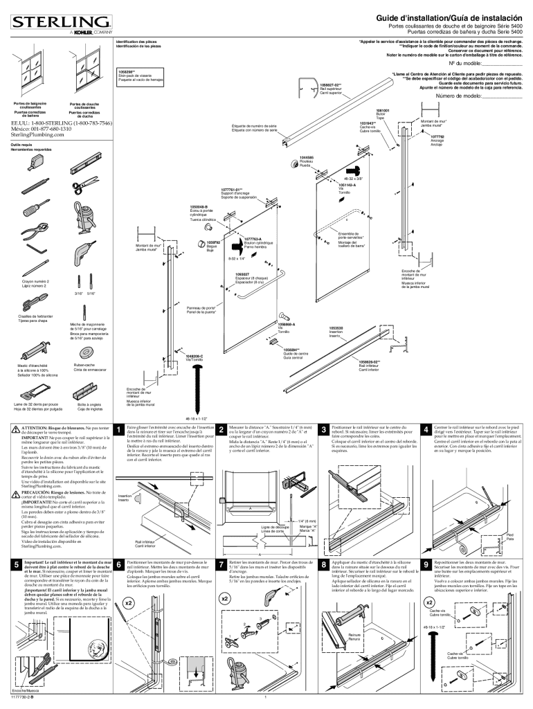 Guide d\'installation×GUA de installation Ports coulissantes de douche et de ignore Erie 5400 Puerto corredizas de Basra y duchy Series 5400 *Appear LE service d\'assistance la clientele pour commander
