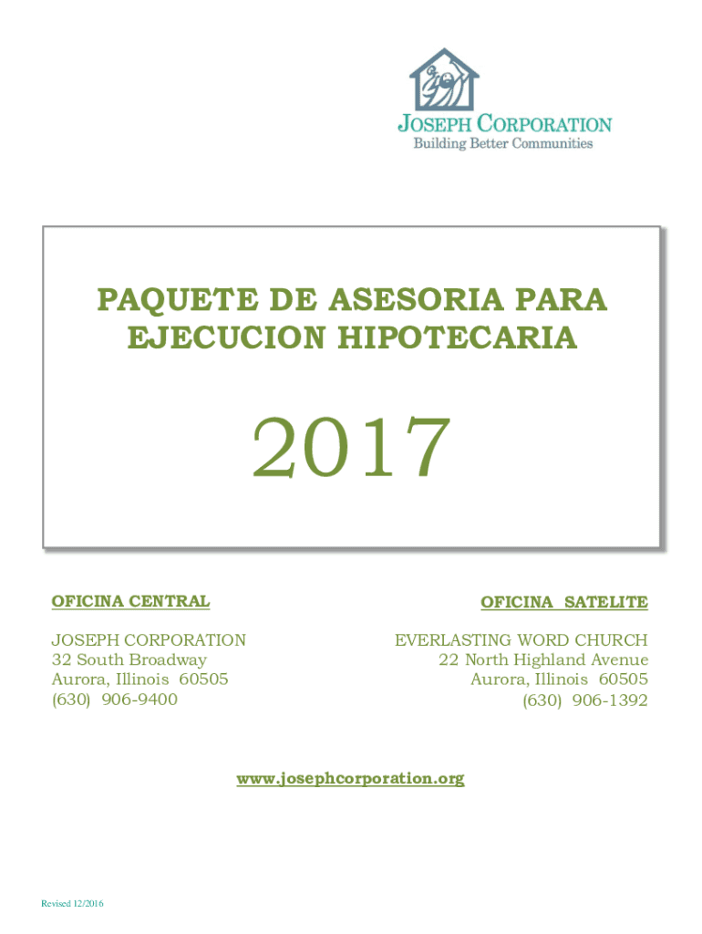 PAIUTE DE ASTORIA PARA EXECUTION HIPOTECARIA2017 OFFICIAL CENTRALOFICINA SATELITEJOSEPH CORPORATION 32 South Broadway Aurora, Illinois 60505 ×630) 9069400EVERLASTING WORD CHURCH 22 North Highland