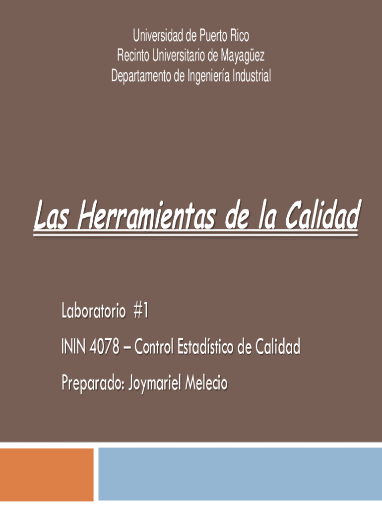 Universidad de Puerto Rico Rec into Universitario de Mayagez Department de Ingeniera Industrial Las Herramientas de la Cali dad Lab oratorio #1 INN 4078 Control Estadstico de Calidad Prepared: Mariel