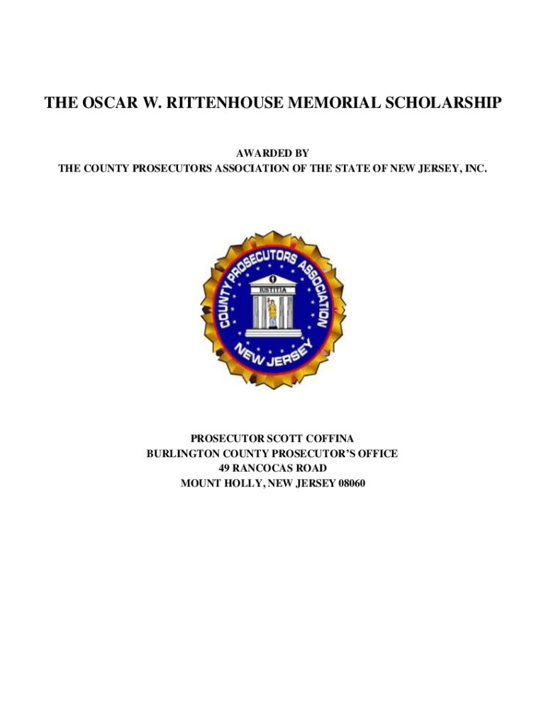 THE OSCAR W. RITTENHOUSE MEMORIAL SCHOLARSHIP AWARDED BY THE COUNTY PROSECUTORS ASSOCIATION OF THE STATE OF NEW JERSEY, INC.PROSECUTOR SCOTT COFFIN BURLINGTON COUNTY PROSECUTORS OFFICE 49 HANCOCK
