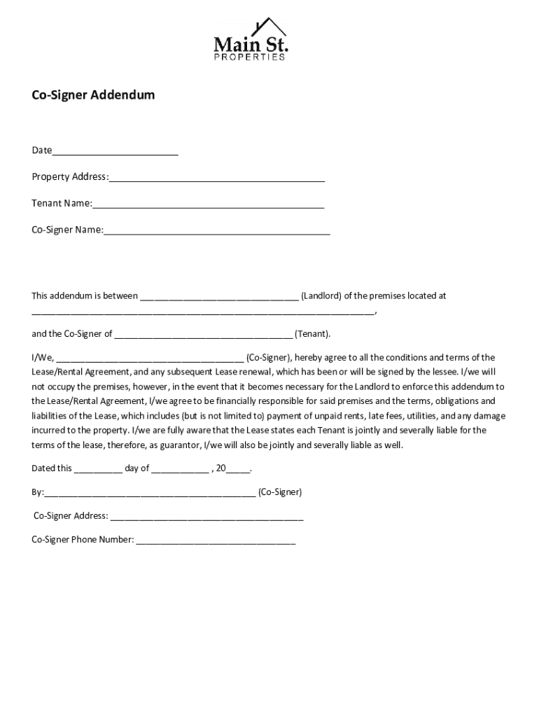 The tenant and co-signer are required to file the co-signer addendum template for rent.