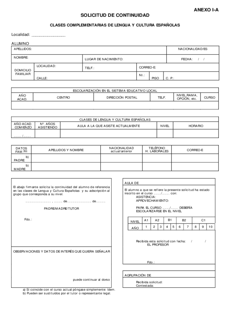 Get the free ANEXO I-A SOLICITUD DE CONTINUIDAD - educacionyfp.gob.es
