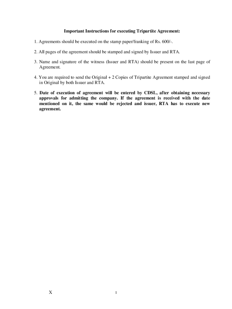 Get the free Important Instructions for executing Tripartite Agreement - CDSL