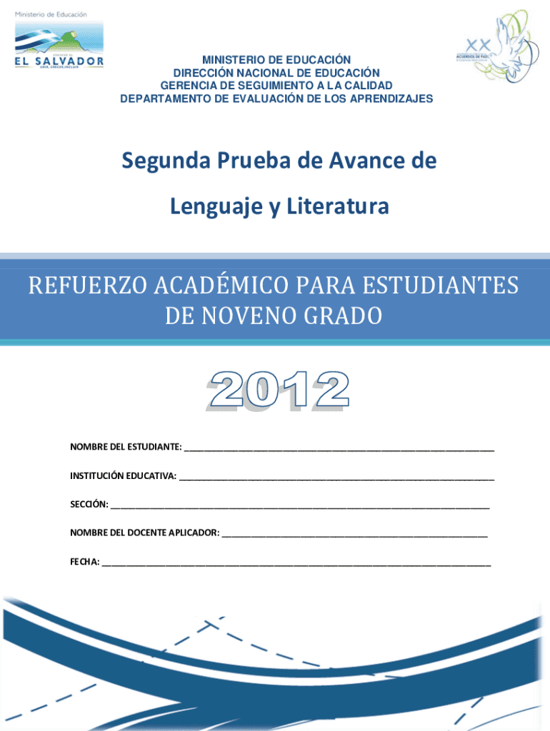 MINISTER DE EDUCATION DIRECTION NATIONAL DE EDUCATION PERENNIAL DE SEGUIMIENTO À la CALIBAN DEPARTMENT DE EVALUATION DE LOS APRENDIZAJESSegunda Puebla de Avance de Lenguaje y Literature REFER ACADEMIC