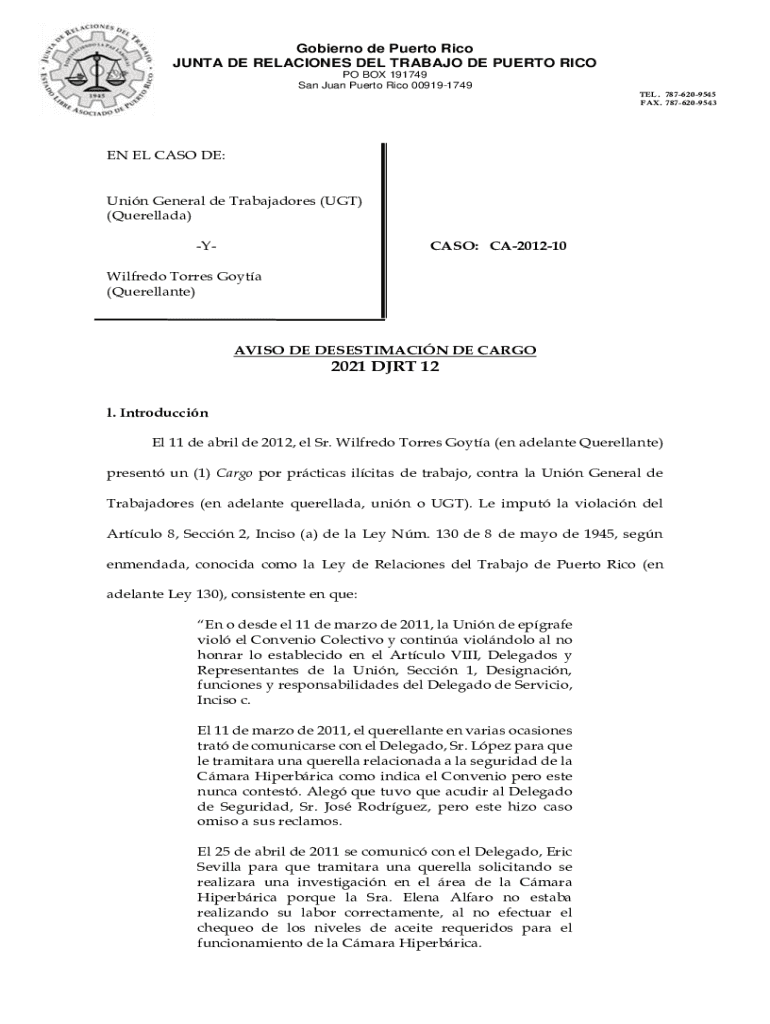Get the free PDF Formulario de Laudo (A).pdf - Junta de Relaciones del Trabajo