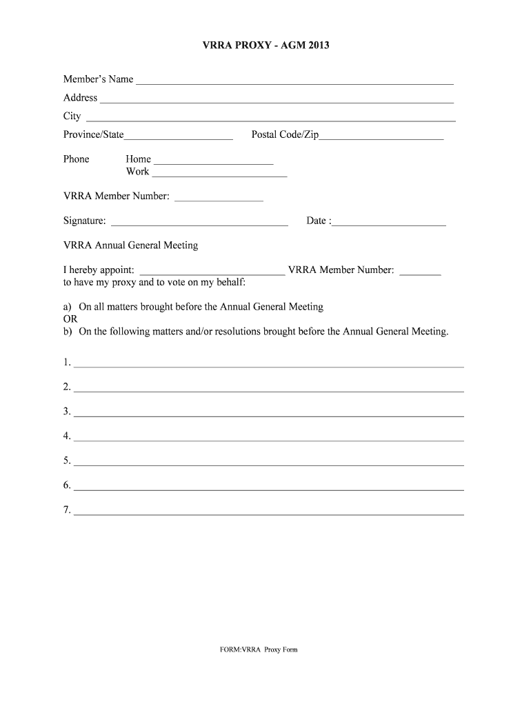 VRRP PROXY AGM 2013. Member's Name .VRRP Annual General Meeting. I hereby appoint: VRRP Member Number: to have my proxy and to vote on my behalf: a) On all matters brought before the ... FORM:VRRP