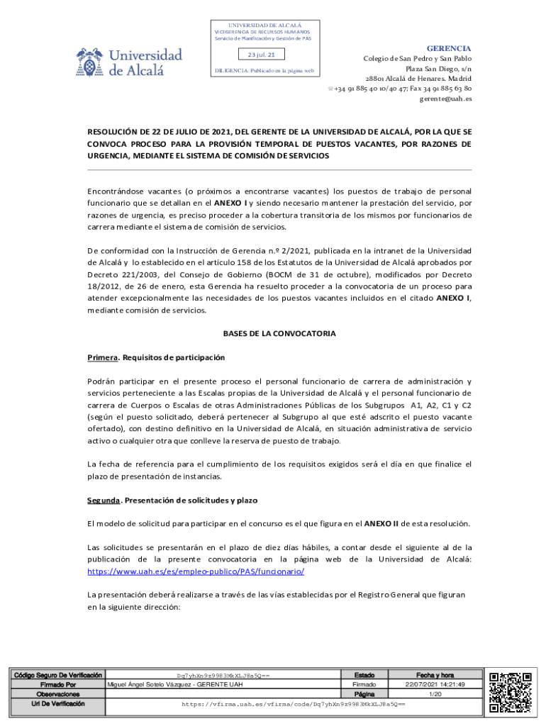 UNIVERSITY DE ALGAL VICEGERENT DE RECUR SOS HUMANS Service de Planificacin y Getting de PAS23 Jul. 21 DILIGENCE: Public ado en la Gina webGERENCIA Colegio de San Pedro y San Pablo Plaza San Diego,