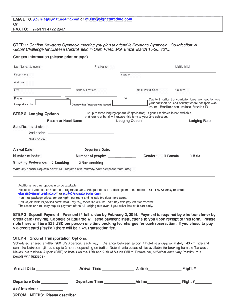 EMAIL TO: Burris signaturedmc.com or quite signaturedmc.com Or FAX TO: ++54 11 4772 2647 STEP 1: Confirm Keystone Symposia meeting you plan to attend is Keystone Symposia: Co-Infection: A Global Challenge