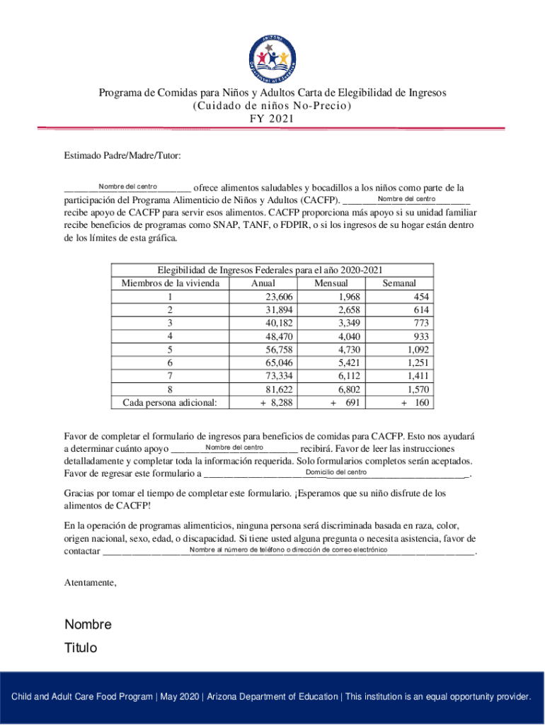 Program de Comidas para BIOS y Adults CARTA de Elegibilidad de Ingresos (Doodads DE BIOS Horacio) FY 2021 Estimate Padre×Made×Tutor: Hombre Del CENTR ___ free aliments valuables y picadillos a Los