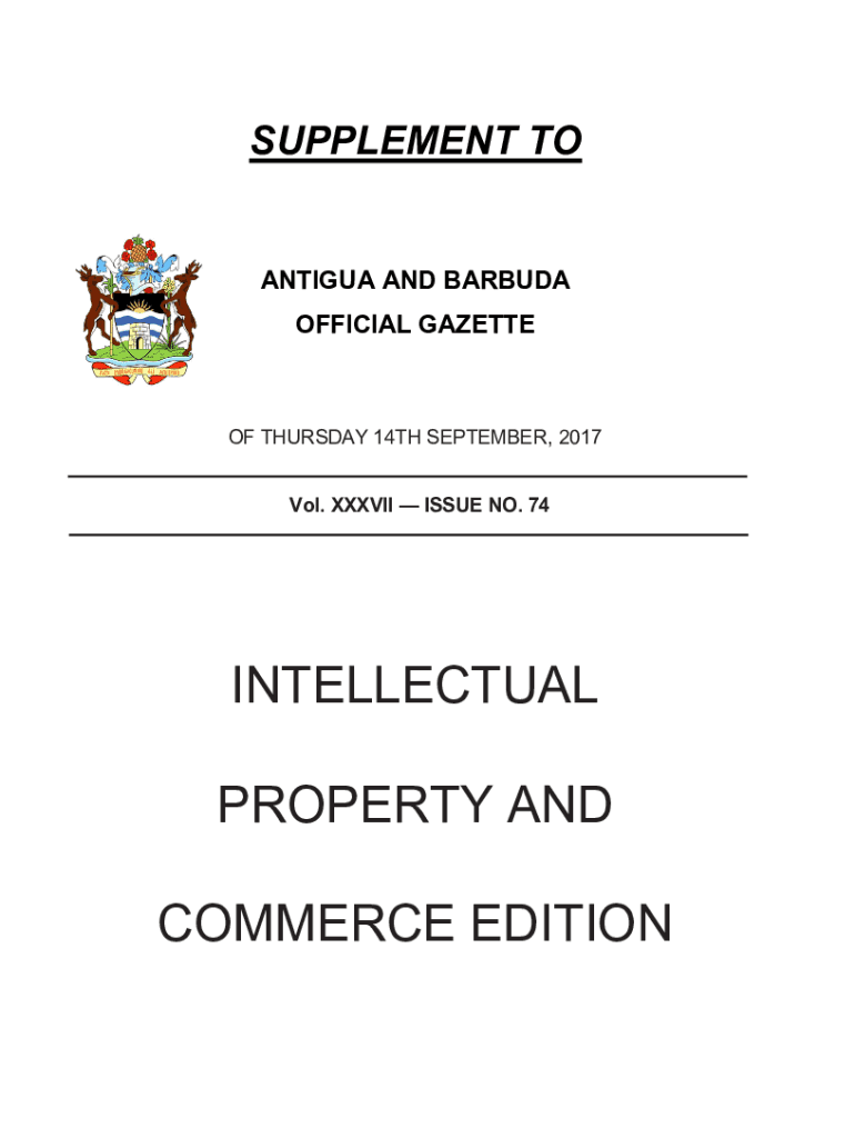 SUPPLEMENT ANTIGUA AND BARBUDA OFFICIAL GAZETTE THURSDAY 14TH SEPTEMBER 2017 Vol. XXXVII ISSUE NO. 74INTELLECTUAL PROPERTY AND COMMERCE EDITION No. 74 THE ANTIGUA AND BARBUDA OFFICIAL GAZETTE SUPPLEMENTARY