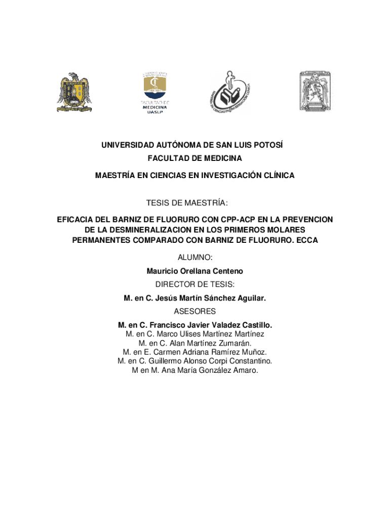UNIVERSITY AUTONOMY DE SAN LUIS PHOTOS FACULTY DE MEDICINE MAESTRO EN AGENCIES EN INVESTIGATION CLNICATESIS DE MAESTRO: EFFICACY DEL BARN IZ DE FLOUR CON CEPAP EN LA PREVENTION DE LA DEMINERALIZATION