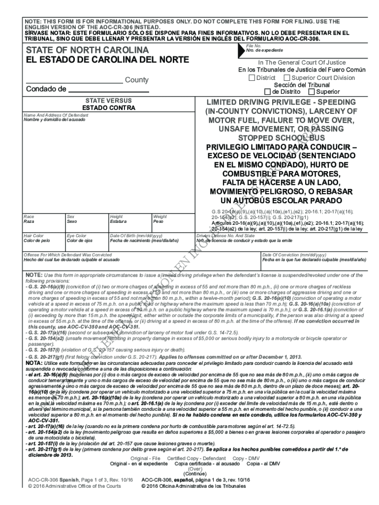 NOTE: THIS FORM IS FOR INFORMATIONAL PURPOSES ONLY. DO NOT COMPLETE THIS FORM FOR FILING. USE THE ENGLISH VERSION OF THE AOCCR306 INSTEAD. SRV ASE NOTAR: ESTER FORMULA RIO SLO SE DISPOSE PARA FINES