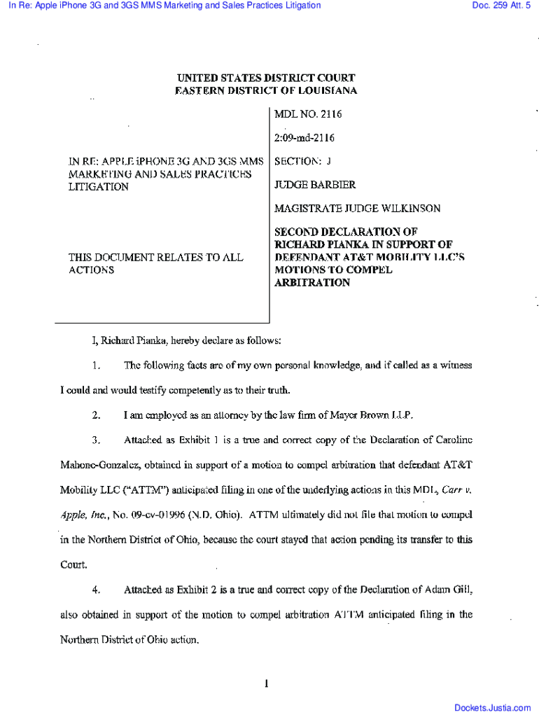 In Re: Apple iPhone 3G and 3GS MMS Marketing and Sales Practices Litigation. 259 ATT. 5Dockets. Justin.exhibit 1 TO SECOND DECLARATION OF RICHARD PIANKAEXHIBIT 1EXHIBIT 2EXHIBIT 3EXHIBIT 2 TO SECOND