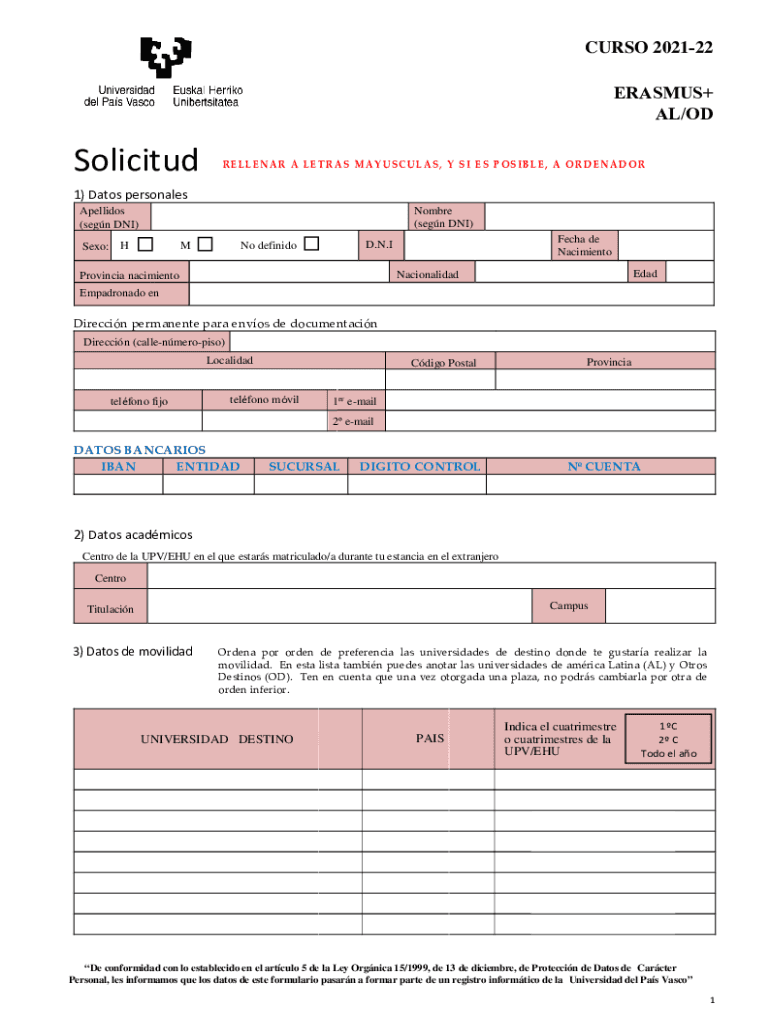 CURSE 202122 ERASMUS+ AL×ODSolicitudRELLENAR A TETRAS MAY US CUL AS, Y SI ES POSSIBLE, A ORDENADOR1) Dates personals Hombre (seen DNI×Spellings (seen DNI) SEO: Mecca de NacimientoD. N. In definidoEdadNacionalidadProvincia