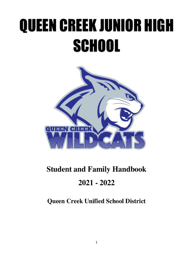 QUEEN CREEK JUNIOR HIGH SCHOOLStudent and Family Handbook 2021 2022 Queen Creek Unified School District1Governing Board Ken Prague Jennifer Revolt... Patty Campbell... Samantha Davis. Matthew Riffed...