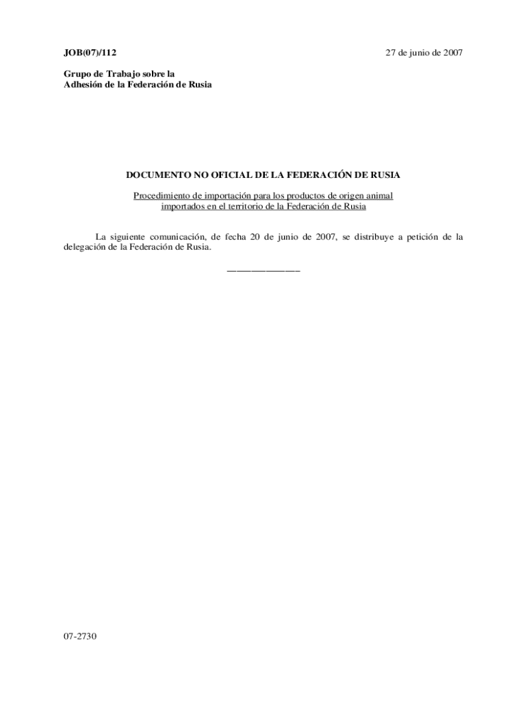 Get the free jobsext07112 Documento No Oficial de la Federacion Rusa procedimiento de importacion...