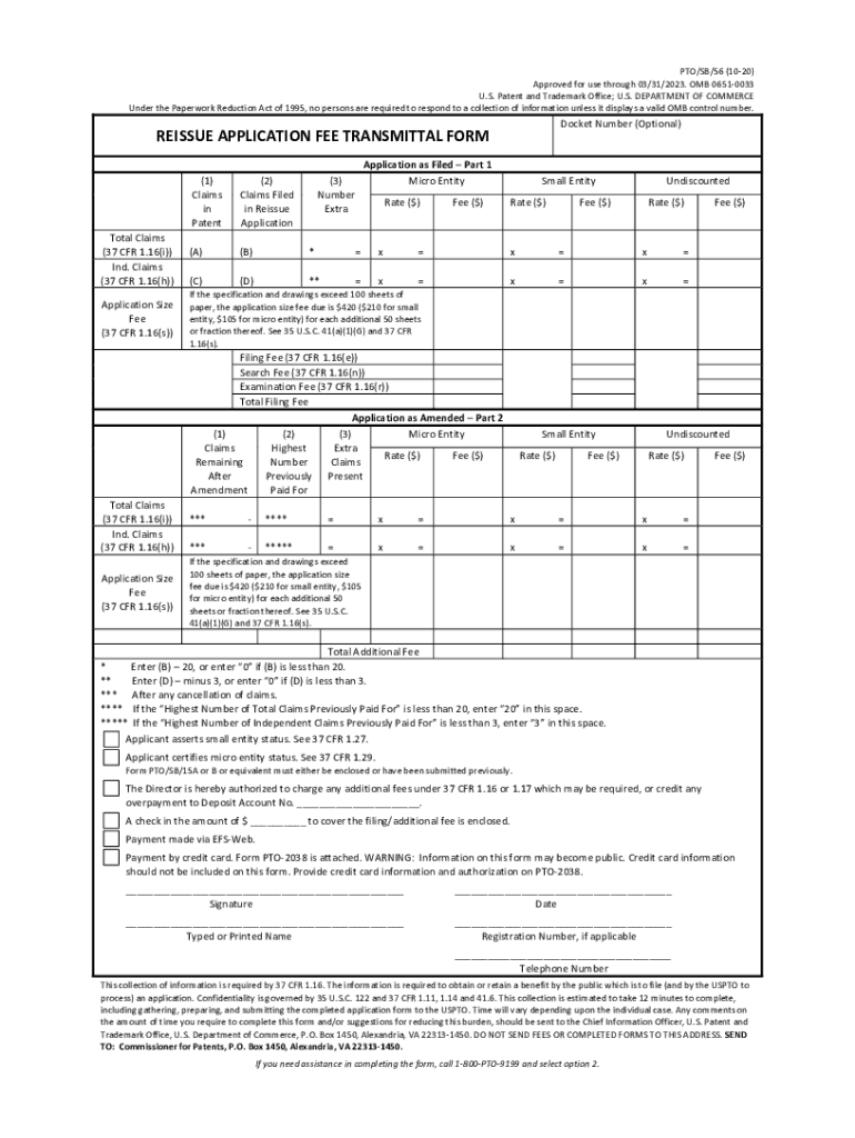 Get the free SB/56 Reissue Application Fee Transmittal Form