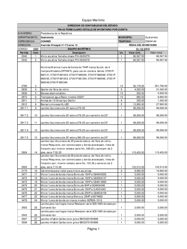 Equip Martin DIRECTION DE CONTABILIDAD DEL ESTATE FIN03 FORMULA RIO DETAILS DE INVENTION POR CENT MINISTER: Presidential DE la Replica DEPARTMENT: Guatemala MUNICIPAL: Guatemala DEPENDENCE: CONRAD