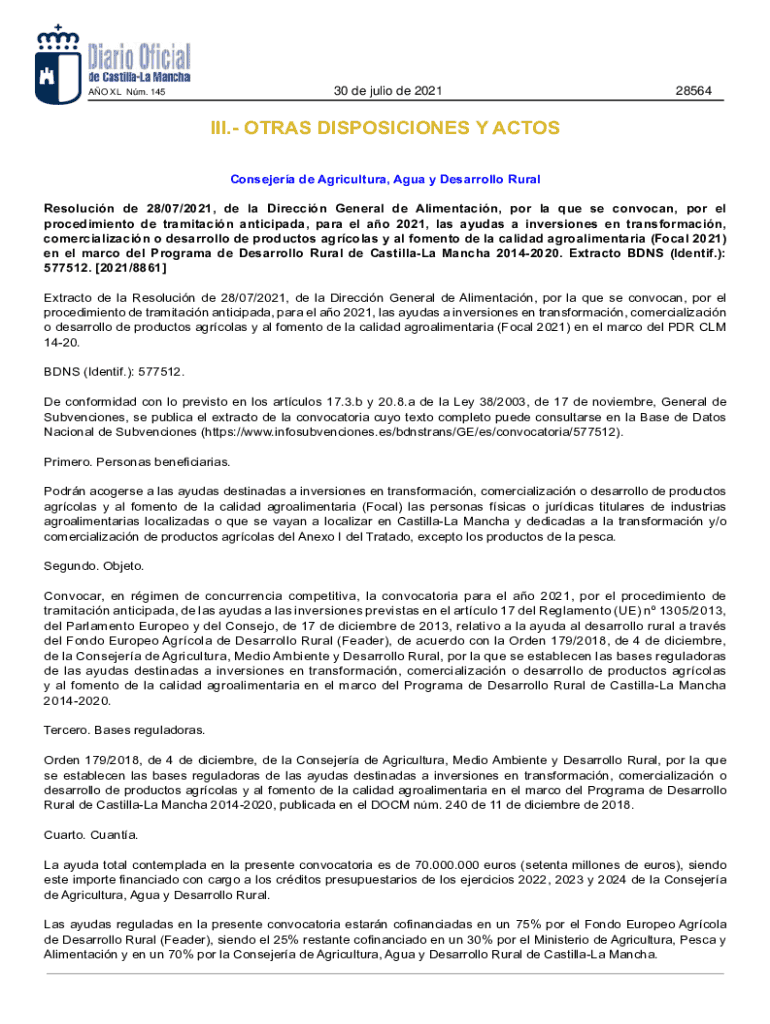 30 de Julio de 2021AO XL Nm. 14528564III. OKRAS DISPOSITIONS Y Consider DE Agricultural, Agra y Desarrollo Rural Resolution DE 28×07/2021, DE la Direction General de Alimentacin, POR la Que SE nonvocal,