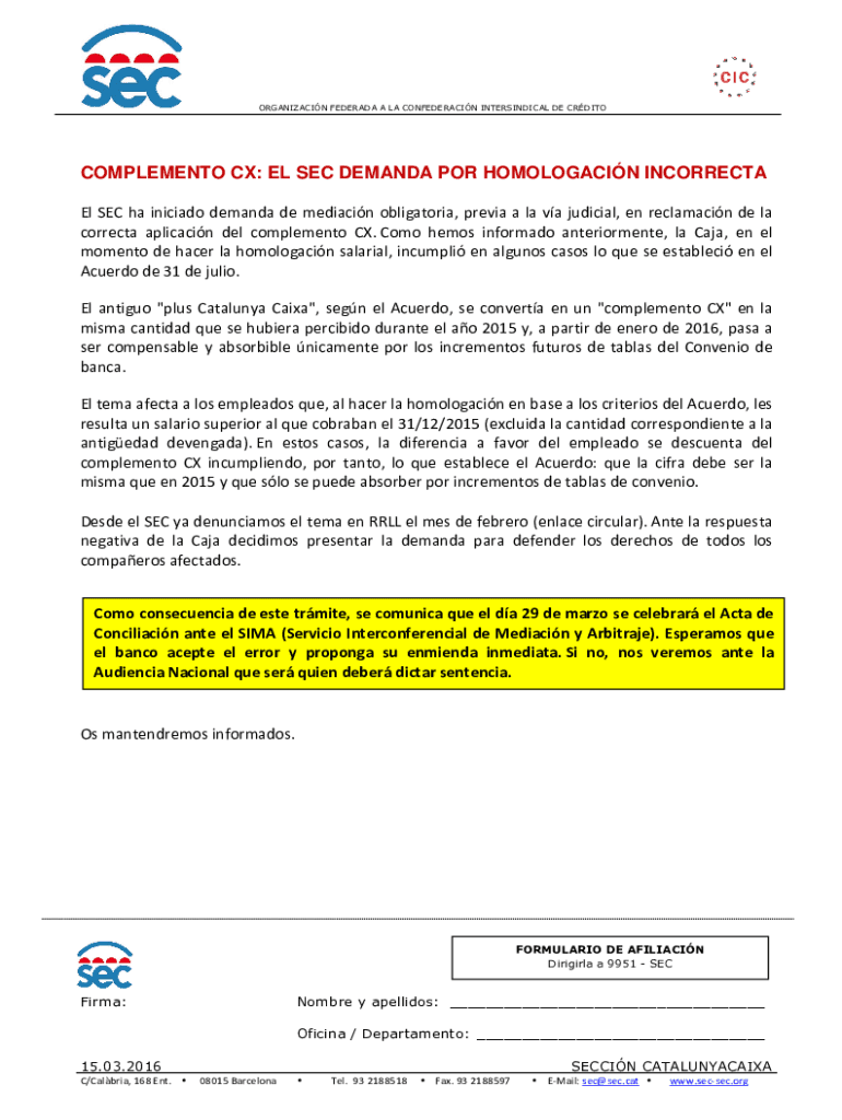 Get, Create, Make and Sign online sec complement cx
