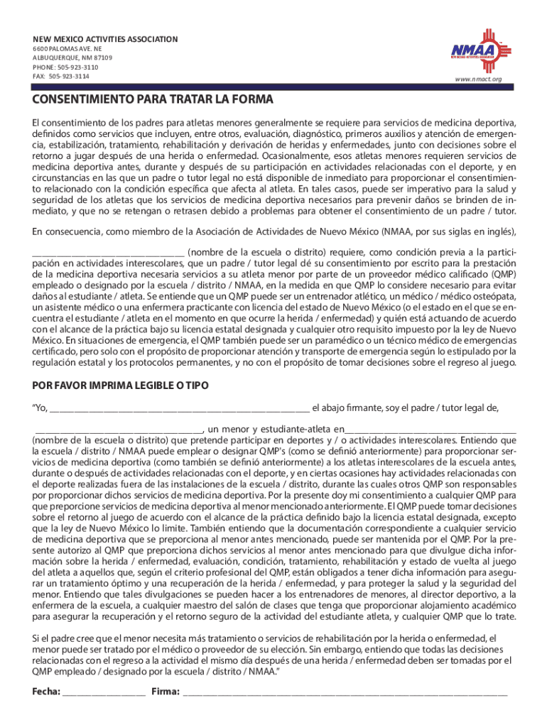 Decide à la actual pandemia DE COVID-19, la Junta Directive de la NMA Aha abroad RNA form FICA alternative para el AO escolar 20202021 SOLVENT Que suede SER utilized POR Los estudiantes athletes