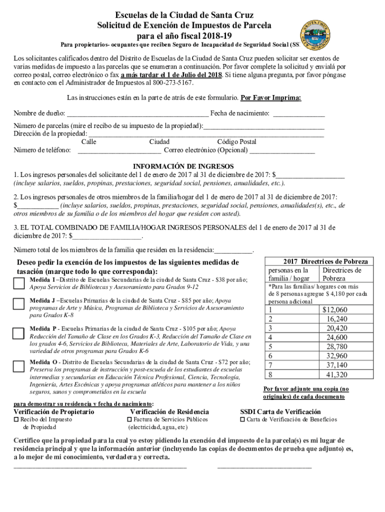 Rescues de la Ciudad de Santa Cruz Solicited DE Evening de Impuestos de Parcela para el AO fiscal 201819 Para proprietaries occupants Que recipe Segura de Incapacidad de la Sciuridae Social (SDI×Instructions