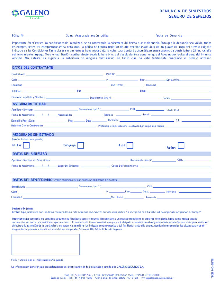 DENNIS DE SINIESTROS SEGURA DE SEPELIOSPliza N ___Sum Segura seen plaza ___Tech de Denuncia ___Important: Verifier en leis conditions DE la plaza is SE ha contracted la overture Del echo Que SE Dennis.