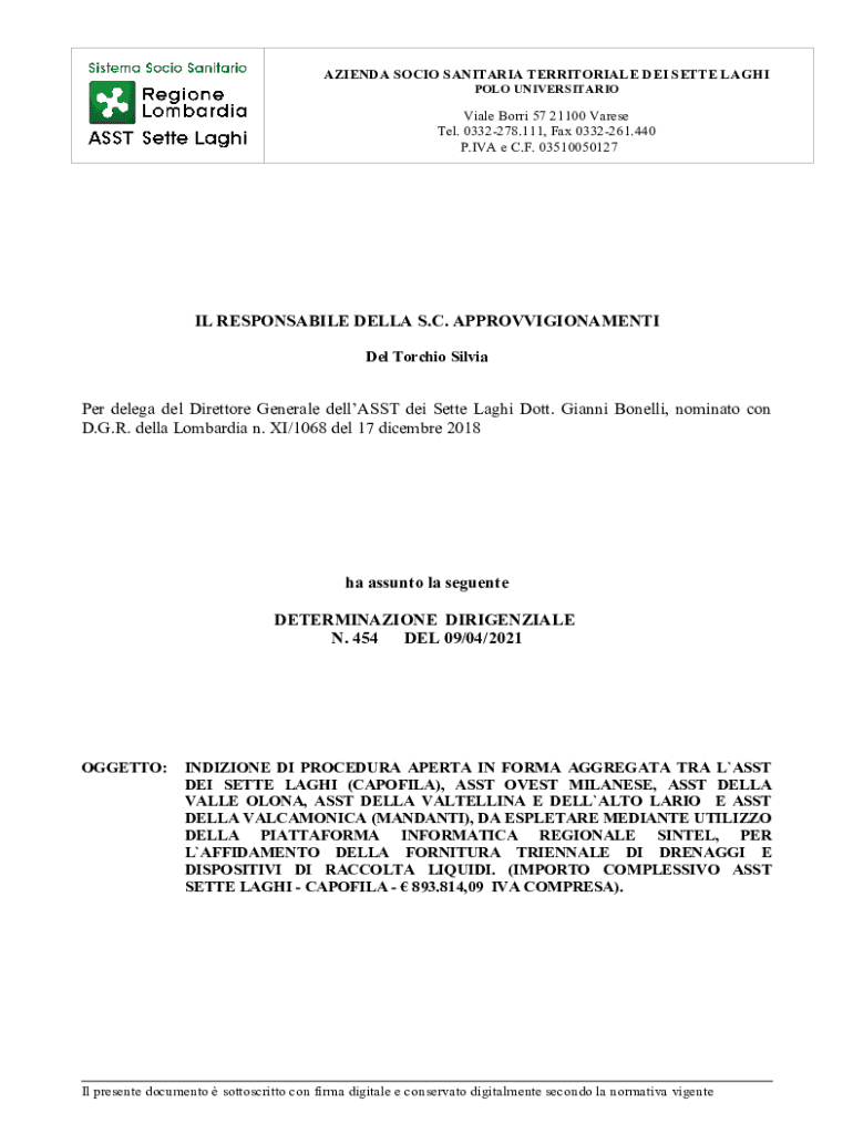 AGENDA SO CIO SANITARIAN TERRITORIAL DEI Settles LA GHI POLO UNIVERSITARIOViale Born 57 21100 Varese Tel. 0332278.111, Fax 0332261.440 P.IVA e C.F. 03510050127IL RESPONSIBLE DELLA S.C. APPROVVIGIONAMENTI