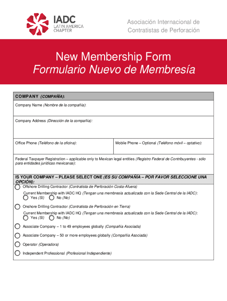 Association International de Contratistas de PerforacinNew Membership Form Formulation Nero de Membresa COMPANY (COMPAQ): Company Name (Hombre de la Compaq):Company Address (Direction de la Compaq):Office