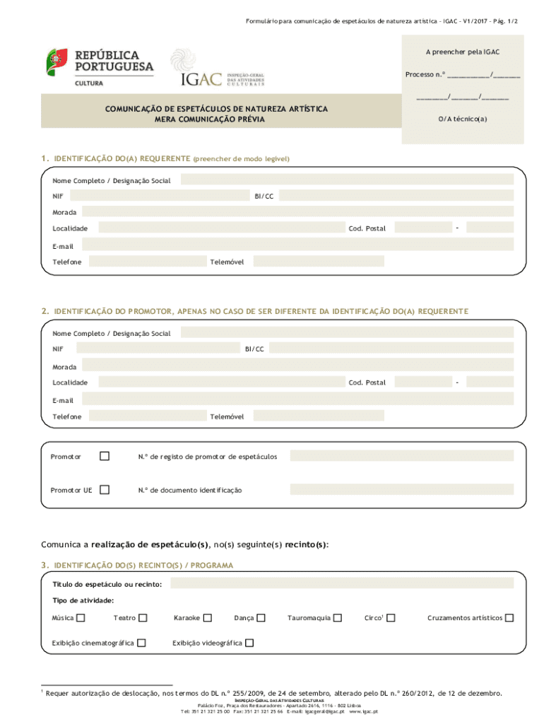 Formulaic para communicate de espetculos de nature artistic IAC V1×2017 Pg. 1×2A preacher plea IAC Process n. ___/___ ___/___/___COMMUNICATE DE ESPETCULOS DE NATURE ZA ARTISTIC ERA COMMUNICATE PRV