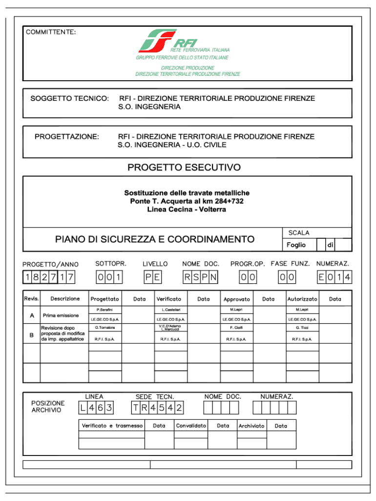 DTP Firenze Piano di Sicurezza e Coordinamento Adeguamento Del Monte ferroviario sub T. Acquired, all Km 284+732 Della line Celina VolterraPiano di Sicurezza e Coordinamento D. LGS. n. 81 Del 9 April