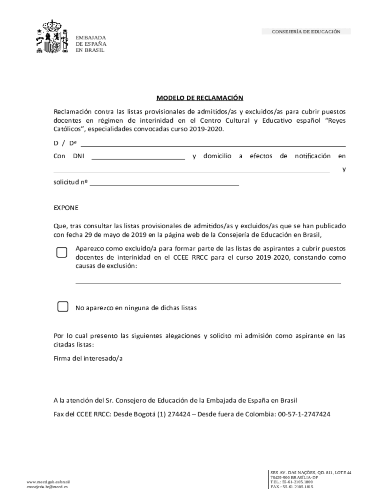 CONSIDER DE EDUCACINEMBAJADA DE ESAA EN BRASILMODELO DE RECLAMATION contra leis lists provision ales DE addition×as y excludes×as para cubic prestos docents en regimen de Trinidad en el CENTR Cultural