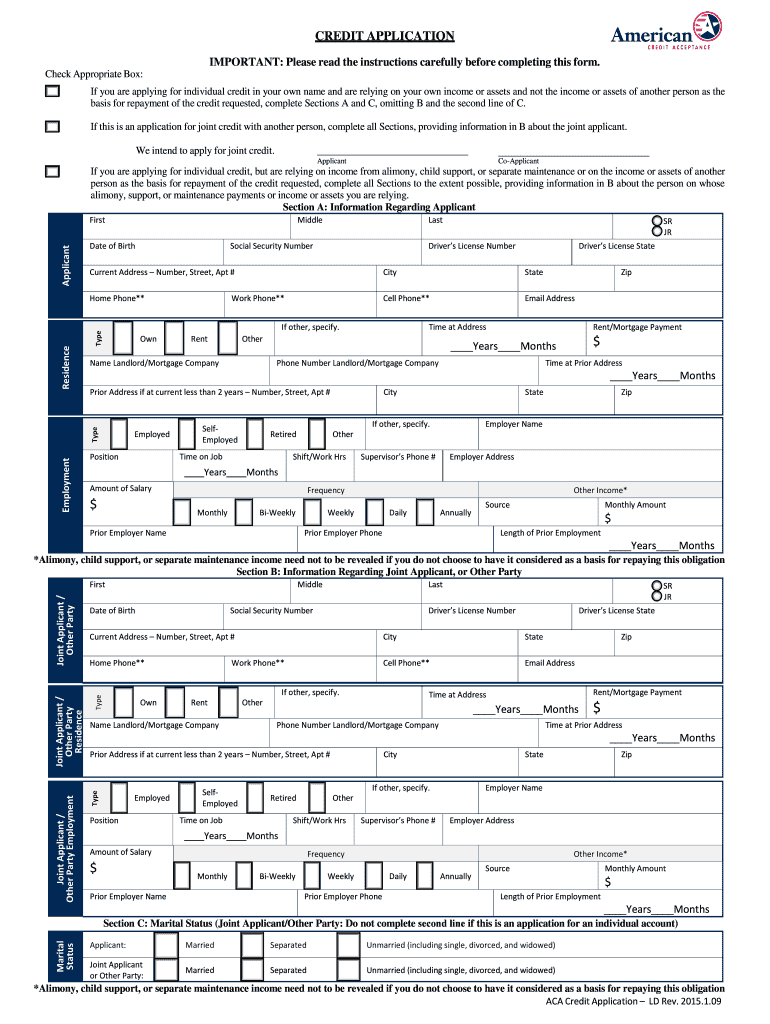 CREDIT APPLICATION IMPORTANT: Please read the instructions carefully before completing this form. Check Appropriate Box: If you are applying for individual credit in your own name and are relying
