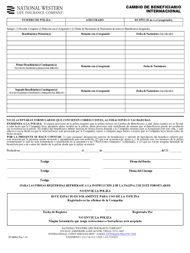 CAM BIO DE BENEFICIARIES INTERNATIONAL NUMBER DE PLIZAASEGURADODUEO (Si no BS El Segundo×Unique (1) Hombre Complete (2) Remain con El Segundo y ×3) Tech de Nacimiento de to-dos Los Beneficiaries