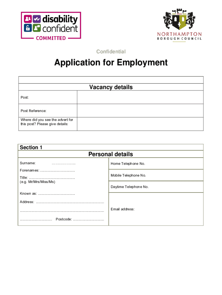 Get the free Northampton Borough Council - Job Application Form (2020)