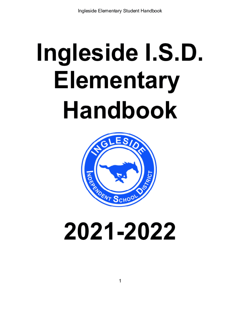 Inside Elementary Student HandbookIngleside I.S.D. Elementary Handbook20212022 1Ingleside Elementary Student HandbookDistrict of Choice Passion, Purpose, Pride 20212022 Inside I.S.D. Elementary Handbook