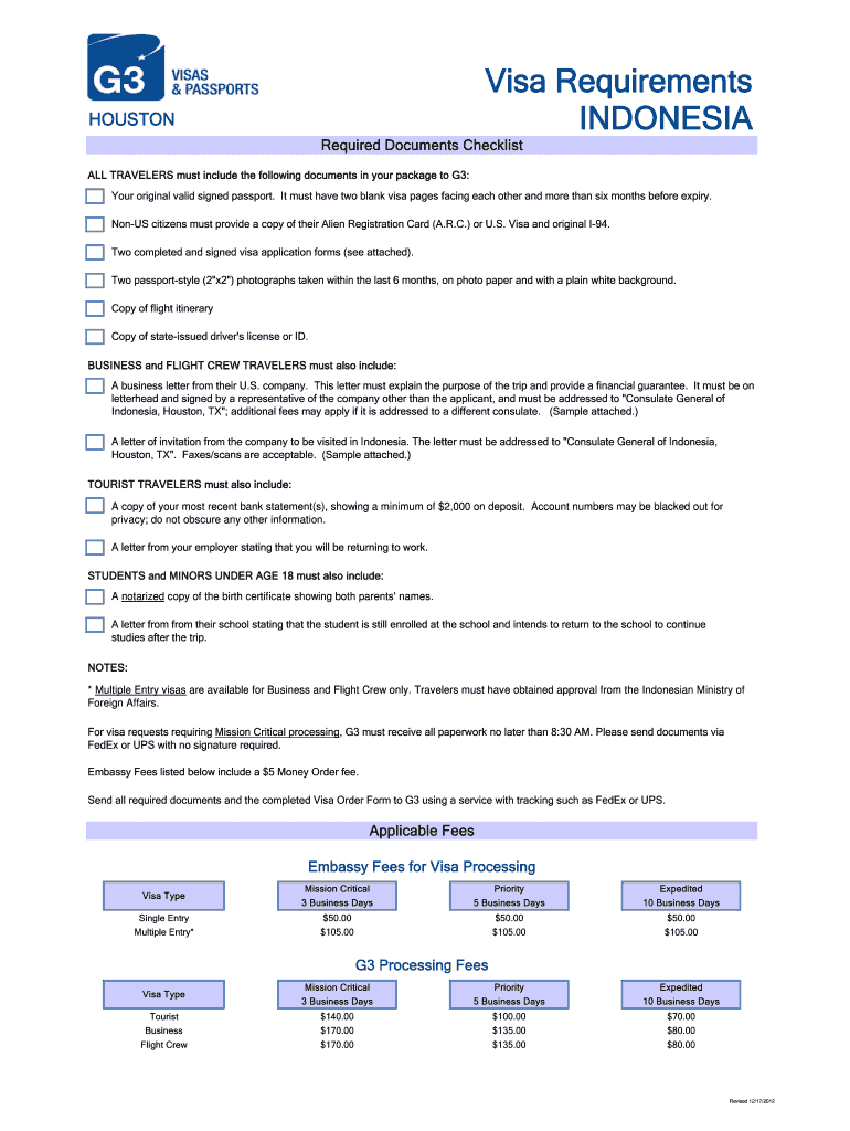 Get the free Indonesia Visa Application Form